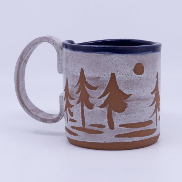Clay mug. Food- and water-safe, hand-washing recommended.